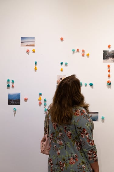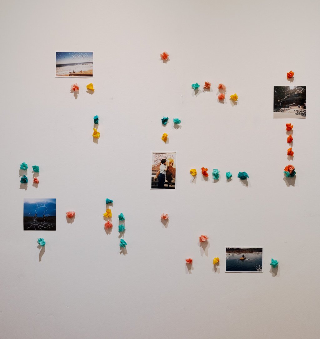 Las pequeñas esculturas añaden otro lenguaje a la obra, como si ellas mismas fueran otras figuras de memorias, más abstractas formalmente pero tan coloridas y lúdicas como el recordar e imaginar puede serlo. Esta obra se dirige a nuestra nostalgia, memoria y sentido temporal.