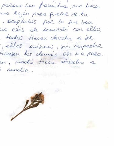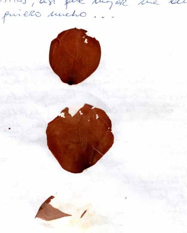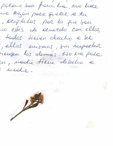 Páginas del diario de embarazo de mi mamá (98'-99'), pétalos de buganvilia y carbonicllo