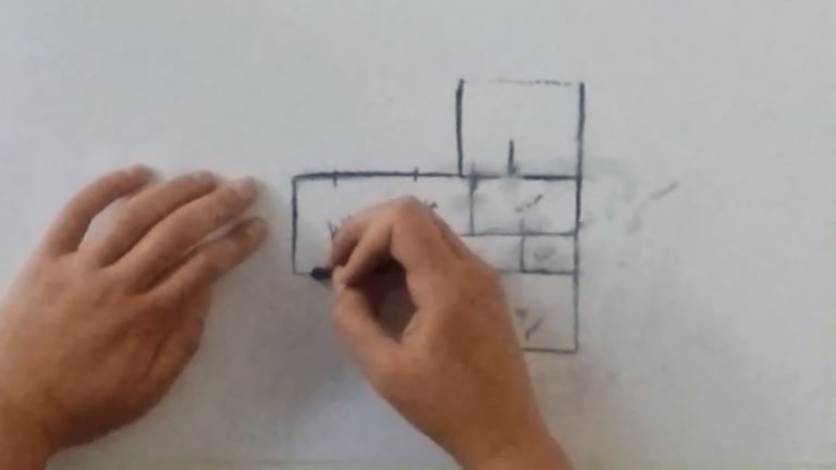 Estos planos son ensueños, una combinación entre el recuerdo, la imagen y las cargas emotivas o sueños que tienen esos espacios. La imagen es el trazo del carbonillo sobre papel, la imago de estos espacios que solo existen como tal en la memoria. El trazo es guiado por el recuerdo, que a su vez es mediado por la mano, y el recuerdo está teñido de emociones asociadas, cargas emotivas, como agua teñida de acuarela. El recuerdo se transforma en palabra hablada y se transmite como un relato. Los planos que dibujo son casas relatadas desde la memoria ajena y materna que se vuelve propia. Cada una guarda palabras clave que se asocian a estos recuerdos, son imágenes y objetos específicos en un espacio ambiguo. En el relato del recuerdo, como en el ensueño, confunden las temporalidades, difuminando sus límites. “Tu pieza está” y “su pieza estaba” entran en la misma explicación del pasado. En el relato, la voz materna se encuentra ausente. Es un vacío entre palabras que da un espacio al sonido de la materia, el carboncillo sobre papel. El trazo es, entonces, un narrador de memoria también.