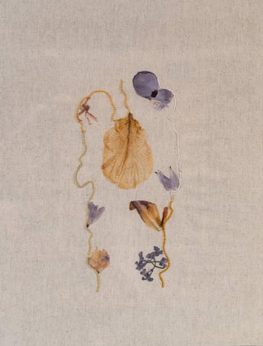 Bordado / Técnica MixtaPétalos secos, hilo de bordar14" x 11" c/u2022 - 2023